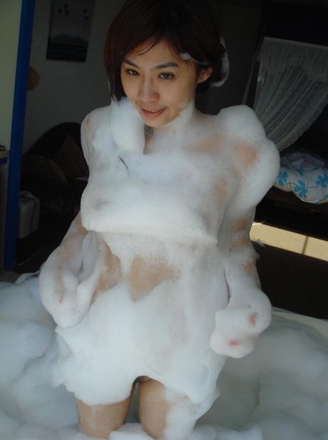 juicyjade: Asian amateur girl with small tits and a sexy booty strips and poses in a tub