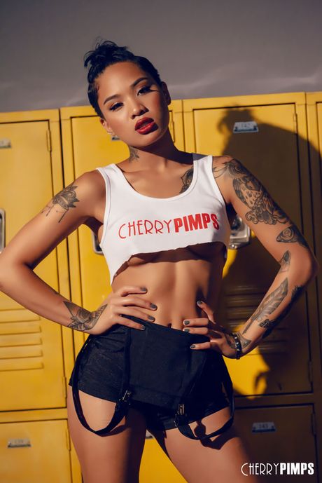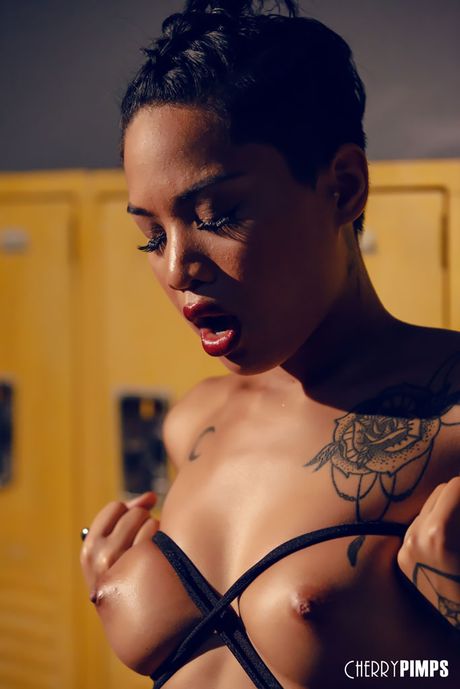 Cherry Pimps: Asian pornstar Honey Gold reveals her big racks and ass in a solo
