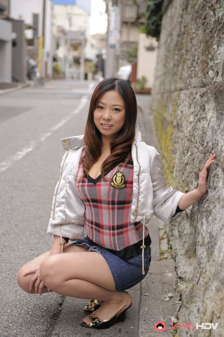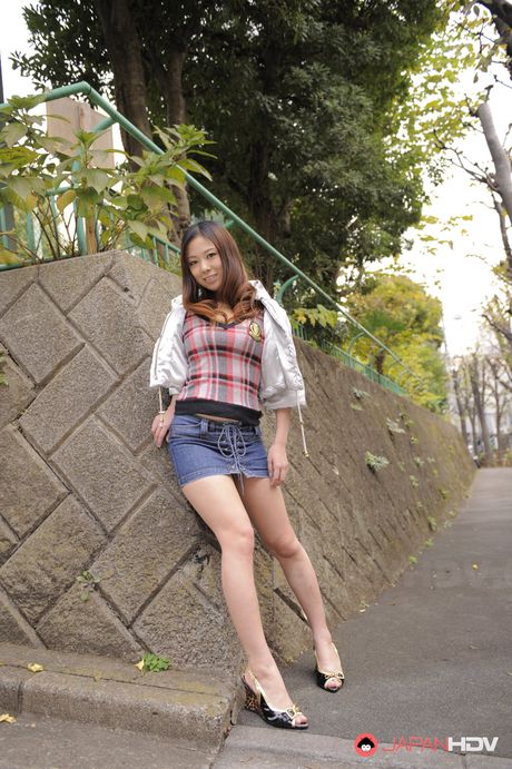 Japan HDV: Curly haired cutie Asuka teasingly slides her hands all over her body.