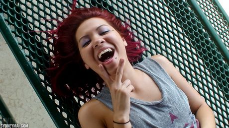 Pink Velvet Vault: Sexy Asian Sydney Mai strips and shows her sexy butt and tits in a solo